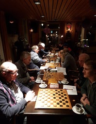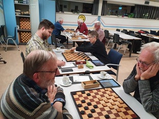 Sierd speelde een puike partij tegen Thomas van der Klis die hij met een fraai eindspel bekroonde! Luca won ook mooi met een prachtige afwikkeling forceerde hij schijf en partijwinst! Luuk speelde zijn tegenstander keurig weg in een dun standje! Bert van Leijden speelde een puike partij maar vergat het af te maken. Bertus maakte ook gehakt van zijn tegenstander Bert kreeg het hele centrum en wist dat mooi uit te buiten! Frans Groot speelde ook goed maar maakte een blunder en verloor helaas. Adri speelde een prachtige flankspel partij waarin Adri duidelijk liet zien wie er het meeste van af wist winst dus voor Adri! Ivar speelde ook goed! maar kwam helaas net te kort en verloor de partij. ik zelf speelde tegen de zwaarste man van het gezelschap ik dacht iets in het voordeel te komen maar bij analyse was het allemaal gelijkwaardig.