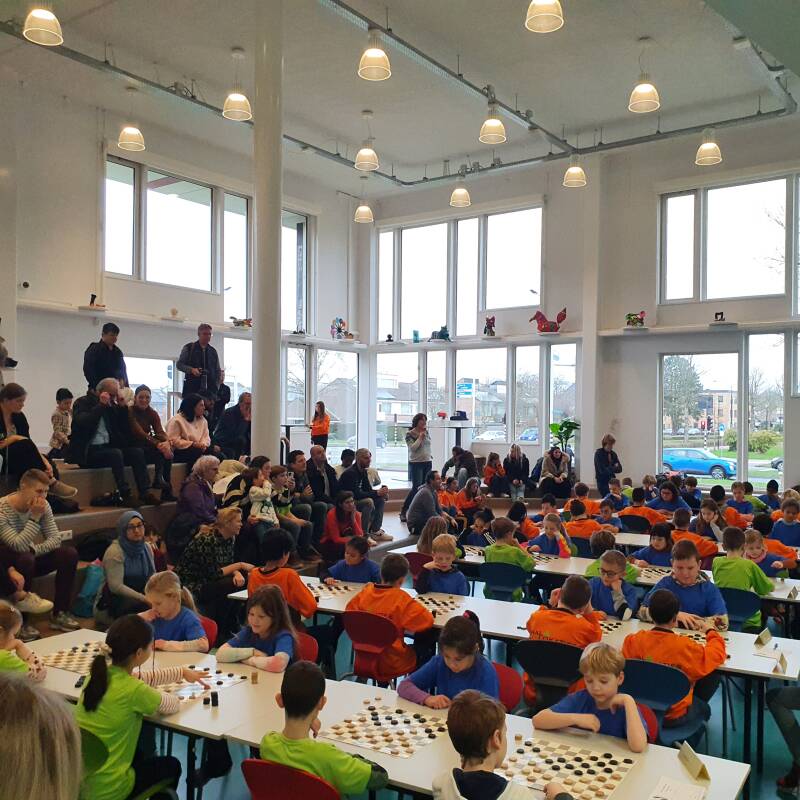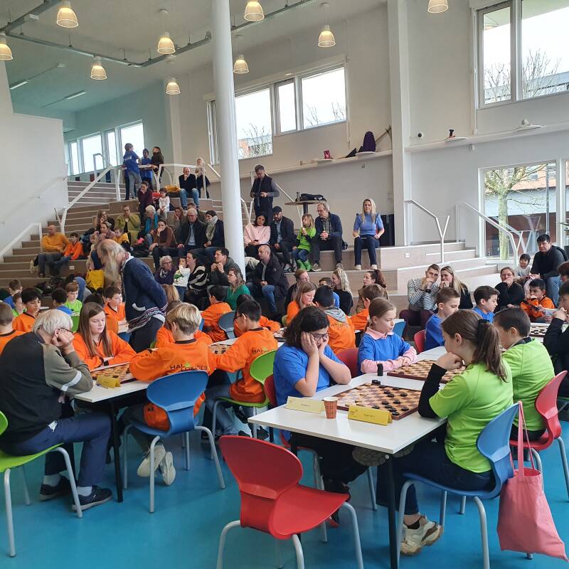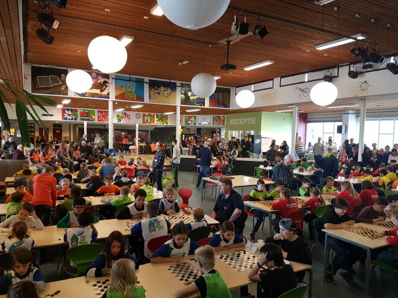 In een bomvolle aula van het Huygens college bonden maar liefst 29 teams vanuit heel Noord Holland de strijd om het kampioenschap met elkaar aan. Bij de pupillen (groep 7-8) maakte De Vogelweid zijn favorietenrol vanaf de eerste wedstrijd waar. Ongeslagen en met 57 bordpunten liet het de anderen ver achter zich. De Cirkel uit Amstelveen werd heel knap tweede. Het bleef de Koningin Julianaschool uit Den Helder en plaatselijk favoriet PJ Smitschool net voor. Naast deze vier sterke pupillenteams hebben ook De Hofstee (Julianadorp), Middelie 1, De Wheermolen (Purmerend), Brederode Dalton (Santpoort Zuid) en De Rank (Julianadorp) zich geplaatst voor de halve finale van Nederland.