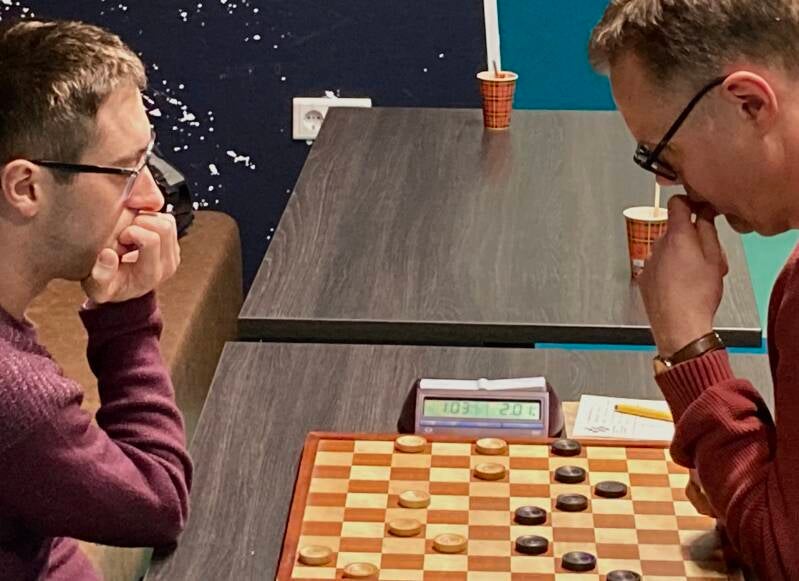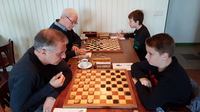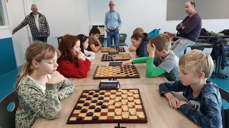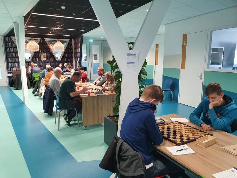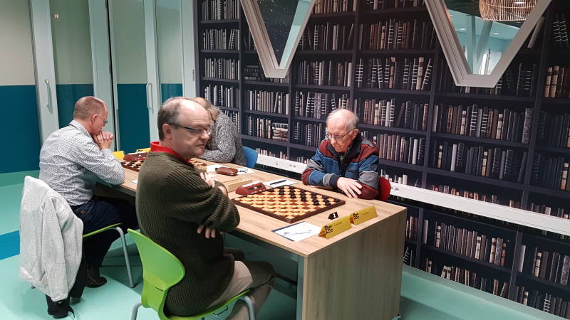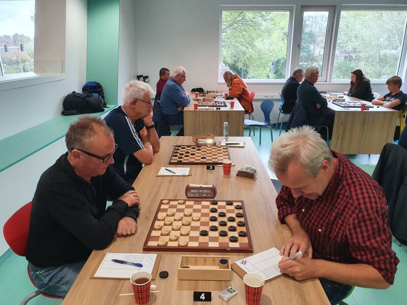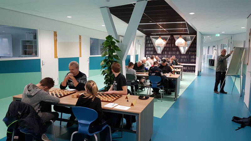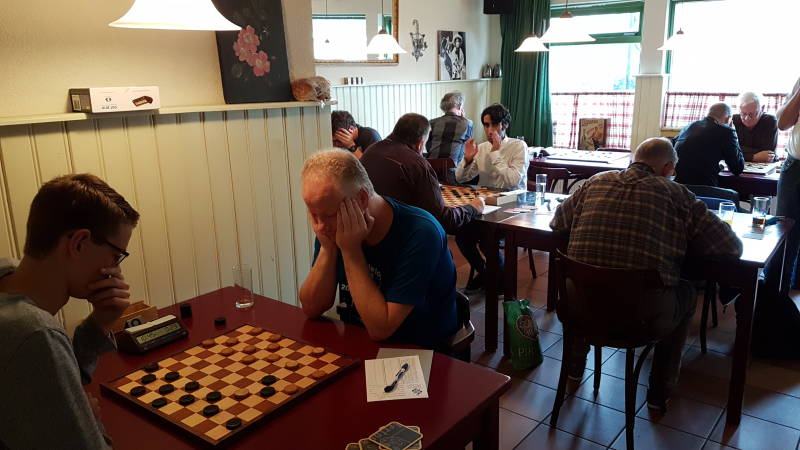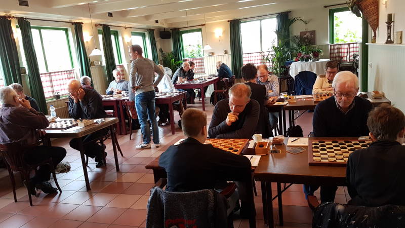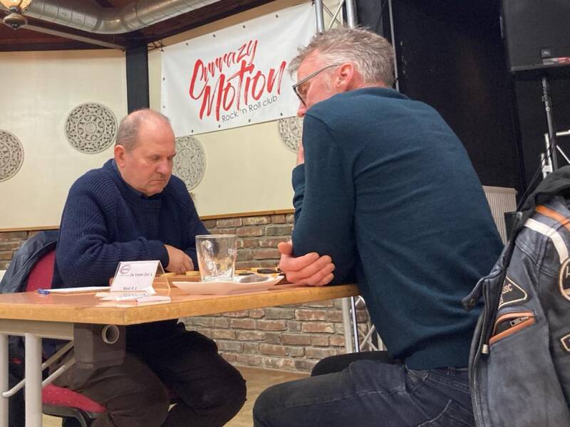Sierd speelde een puike partij tegen Thomas van der Klis die hij met een fraai eindspel bekroonde! Luca won ook mooi met een prachtige afwikkeling forceerde hij schijf en partijwinst! Luuk speelde zijn tegenstander keurig weg in een dun standje! Bert van Leijden speelde een puike partij maar vergat het af te maken. Bertus maakte ook gehakt van zijn tegenstander Bert kreeg het hele centrum en wist dat mooi uit te buiten! Frans Groot speelde ook goed maar maakte een blunder en verloor helaas. Adri speelde een prachtige flankspel partij waarin Adri duidelijk liet zien wie er het meeste van af wist winst dus voor Adri! Ivar speelde ook goed! maar kwam helaas net te kort en verloor de partij. ik zelf speelde tegen de zwaarste man van het gezelschap ik dacht iets in het voordeel te komen maar bij analyse was het allemaal gelijkwaardig.