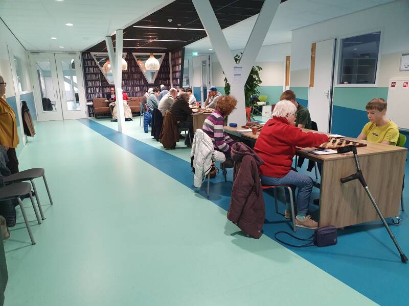 Het was schitterend weer op 16 februari. We gingen op pad naar onze vriendinnen in Scheveningen voor onze laatste bondswedstrijd van het seizoen. We moesten het strand dus laten liggen en naar binnen in het oude Postkantoor. We hadden er alle vertrouwen in dat we het seizoen met een overwinning zouden afsluiten. Na het openingswoordje hadden we echter op onze hoede moeten zijn. De voorzitter had zich goed voorbereid. Hij had het over droogmakerijen en de Noord-Hollandse stolp. Volgens hem houden we in Noord Holland alles onder de stolp. Het had natuurlijk niets met dammen te maken maar hij had ons wel even een lesje geleerd.