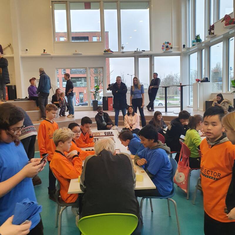 Afgelopen zondag gingen Luca en ik naar de simultaan van Ton Sijbrands in Rotterdam het was erg leuk we hadden allebei verloren. Maar we hadden heel goed partij gegeven! Ton zei zelfs tegen Luca dat hij niet had gedacht dat hij al zo sterk speelde! Kortom een topdag! Luca gaf zelf ook nog een simultaan op het Klein 8x8 bord!!!