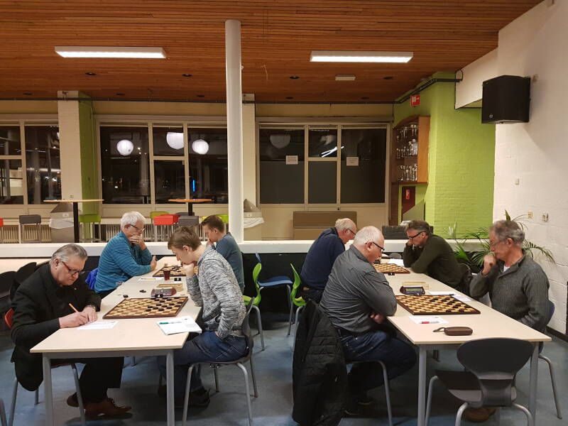 Op een donkere dinsdagavond mocht het eerste team dammen in Amstelveen, tegen ongeslagen koploper. Met het hoongelach van een bebaarde schapenboer, over onze positie op de ranglijst, in ons achterhoofd, vertrokken we met trillende benen richting Amstelveen. Allen tot op het bot getergd namen we gefocust plaats achter de borden. Op alle borden ontspon zich een felle strijd, waarbij vooral Jan opviel met wild west dammen tegen Stobbe, waarbij beiden enige malen konden winnen, of verliezen. Na het optrekken van de kruitdampen bleef echter een remisestand over. Theo tegen Smits kende een gelijke uitslag, waardoor het 2-2 werd. Guido had ondertussen in zijn kenmerkende vreemde speelstijl van Heunen dolgedraaid, zijn enige probleem was het kiezen van een winstvariant. 4-2 derhalve, en Rene zat nog. Hij koos er voor in een iets betere stand voor de winst te gaan, maar het enige wat hij wist te bereiken was dat we later naar huis konden. remise, maar goed voor de teamoverwinning! Nu hopen we bij terugkeer in het clublokaal weer enig respect te ontvangen van voorgenoemde bebaarde schapenboer, met ook grote damkwaliteiten . Het onderling treffen tussen beide grootmachten volgt nog. We hopen de zenuwen in bedwang te kunnen houden. We houden u op de hoogte! Groetjes, Jan.
